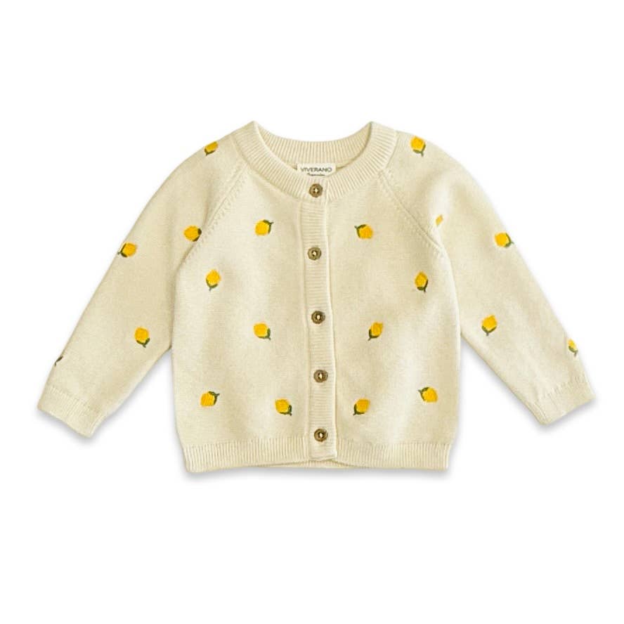 Lemon Embroidered Sweater Knit Organic Cotton Baby Cardigan